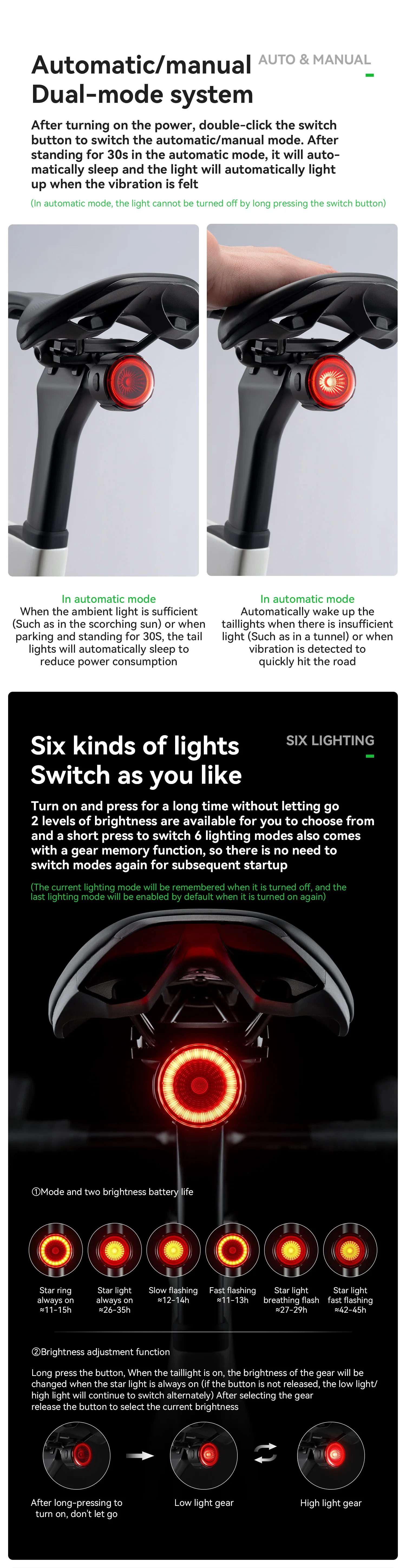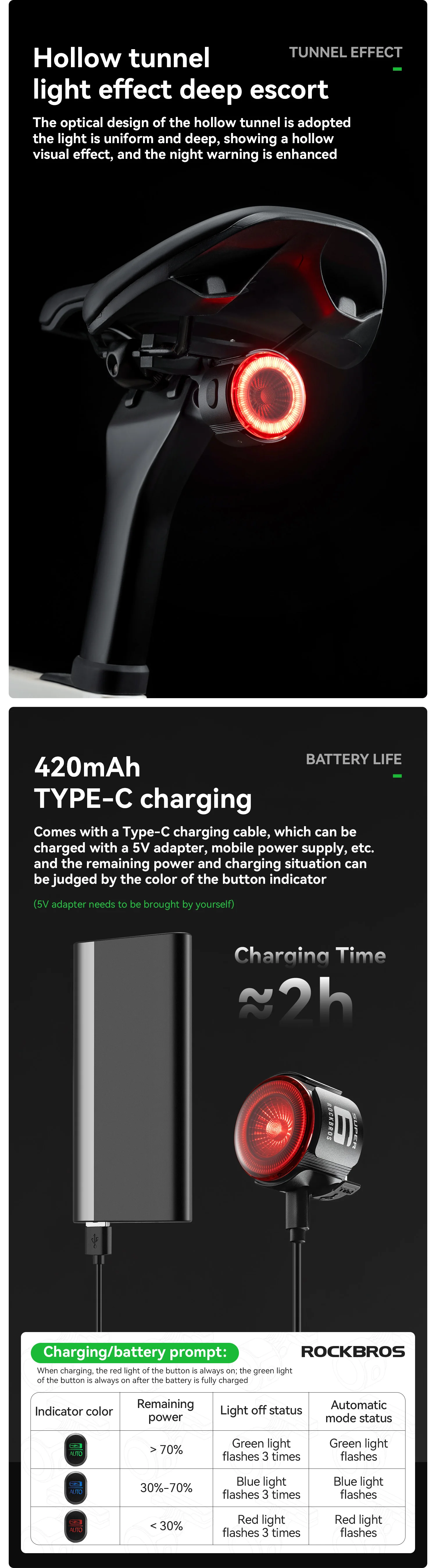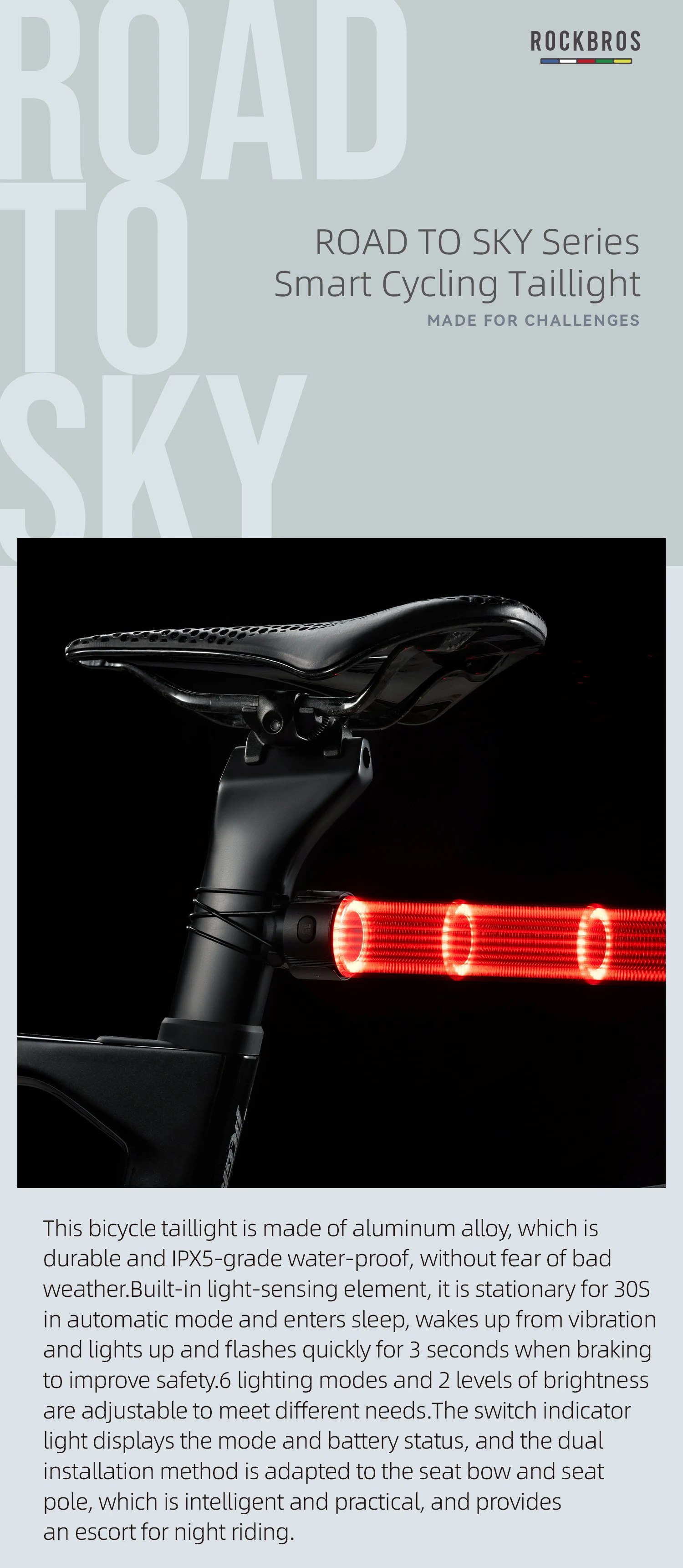 ROCKBROS ROAD TO SKY Bicycle Light With 6 Modes / 400mAh / 11~45h